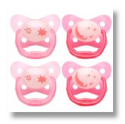 Dr. Brown's PreVent Contoured Glow-in-the-Dark Pacifier Stage 1 (0-6 months) Pink (Pack of 4)